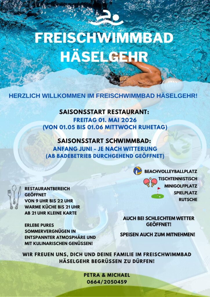 Saisonstart Restaurant Freibad Häselgehr am 01. Mai 2026 30. April 2026Allgemein, Gemeinde NewsGemeinde Häselgehr